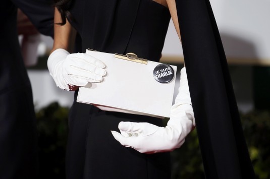 Ο Κλούνεϊ, παραλαμβάνοντας το τιμητικό βραβείο επικεντρώθηκε στην τρομοκρατική επίθεση στο Παρίσι: «Στα εκατομμύρια των ανθρώπων όχι μόνο στο Παρίσι, αλλά και στον κόσμο, σε χριστιανούς, εβραίους και μουσουλμάνους, θα πω ότι εμείς δεν θα βαδίζουμε μέσα στο φόβο ... "Je Suis Charlie"» αναφώνησε ο Κλούνεϊ.